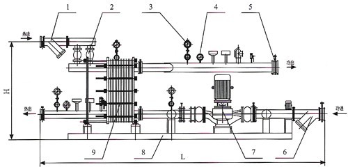 6.除污器 | 7.循環(huán)泵 | 8.底座 | 9.板式換熱器 | 10.補(bǔ)水泵 |